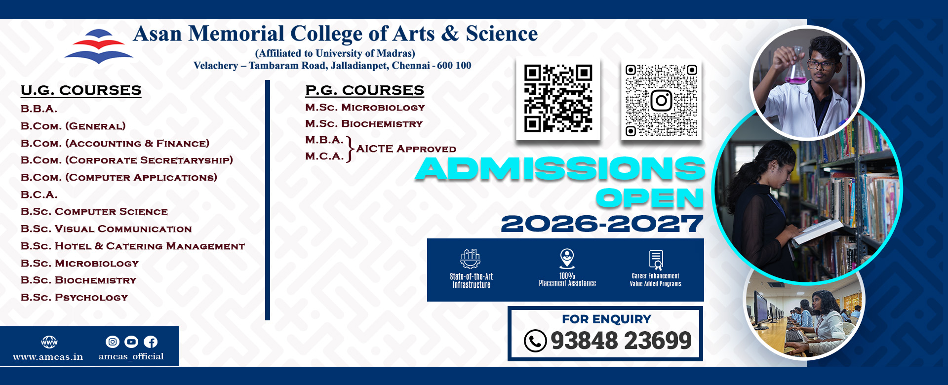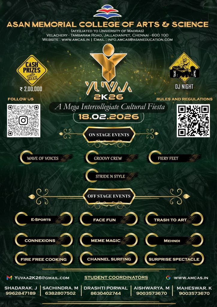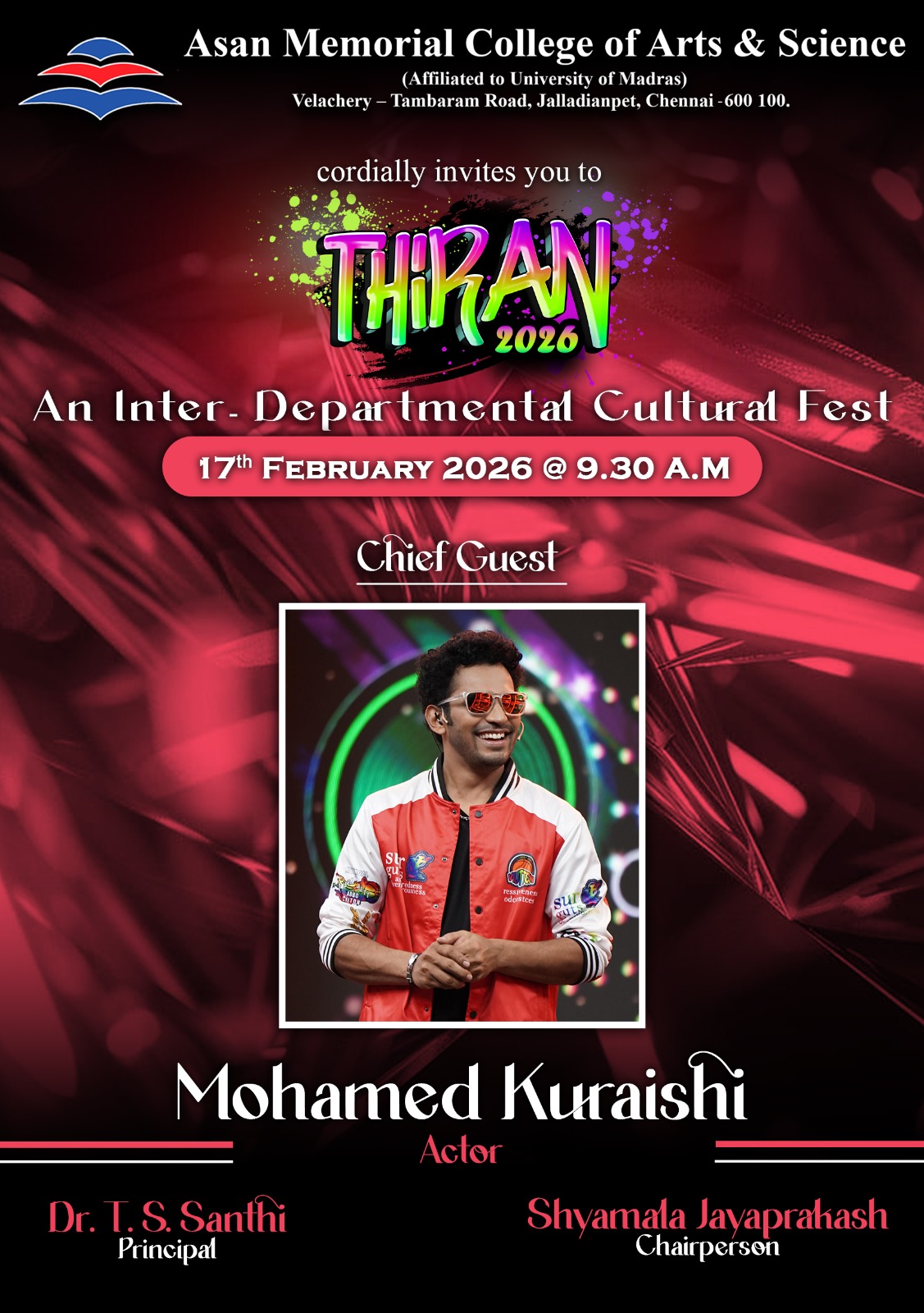 Asan Memorial College of Arts & Science offers the following UG & PG courses as per the regulations of University of Madras.