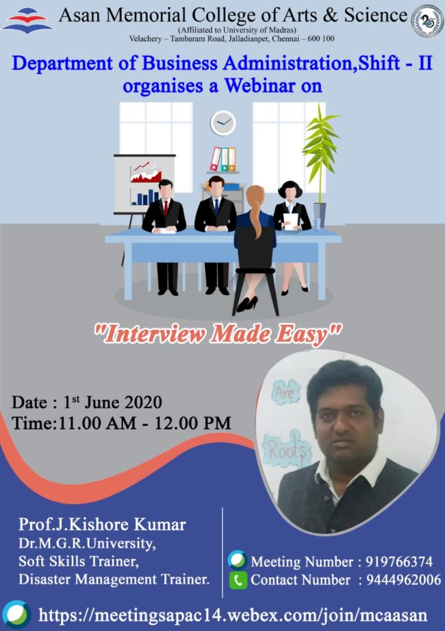 ” Interview Made Easy” -Webinar by Department of Business Administration(Shift – II) on 01/06/2020