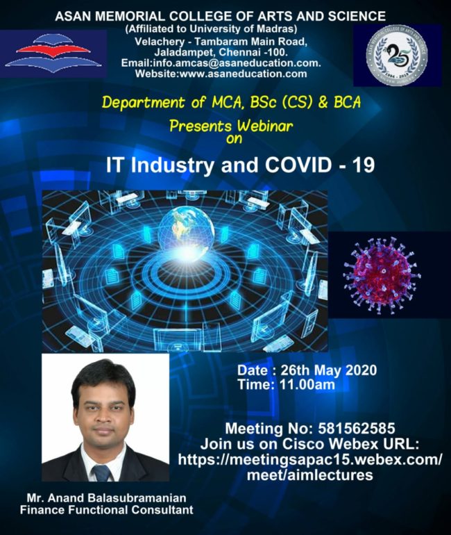 ” IT Industry and COVID 19 ” -Webinar by Department of MCA,BCA & B.Sc (CS) on 26/05/2020