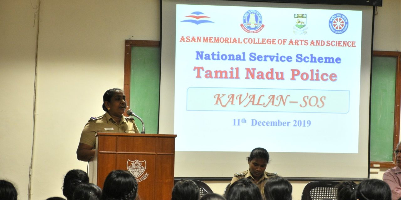 The NSS Unit of Asan Memorial College of Arts and Science along with the Department of Police, Tamil Nadu Government organised an Awareness Programme on ‘Kavalan’, an online app ensuring women’s safety,recently launched by the Department of Police, Tamil Nadu Government, in the Auditorium on 11.12.2019. Dr.S.Ramanathan, Principal, Member – Syndicate,University of Madras presided over the function. Ms.C.Vijayakumari, Inspector of Police, All Women’s Police Station, Madipakkam was the Chief guest. She explained on the working of Kavalan app, it’s usage and emphasised the importance of Women safety in the society. Nearly 500 women students were the beneficiaries of this programme. Dr. P. Ramesh Kumar, NSS Programme Officer organised this event.