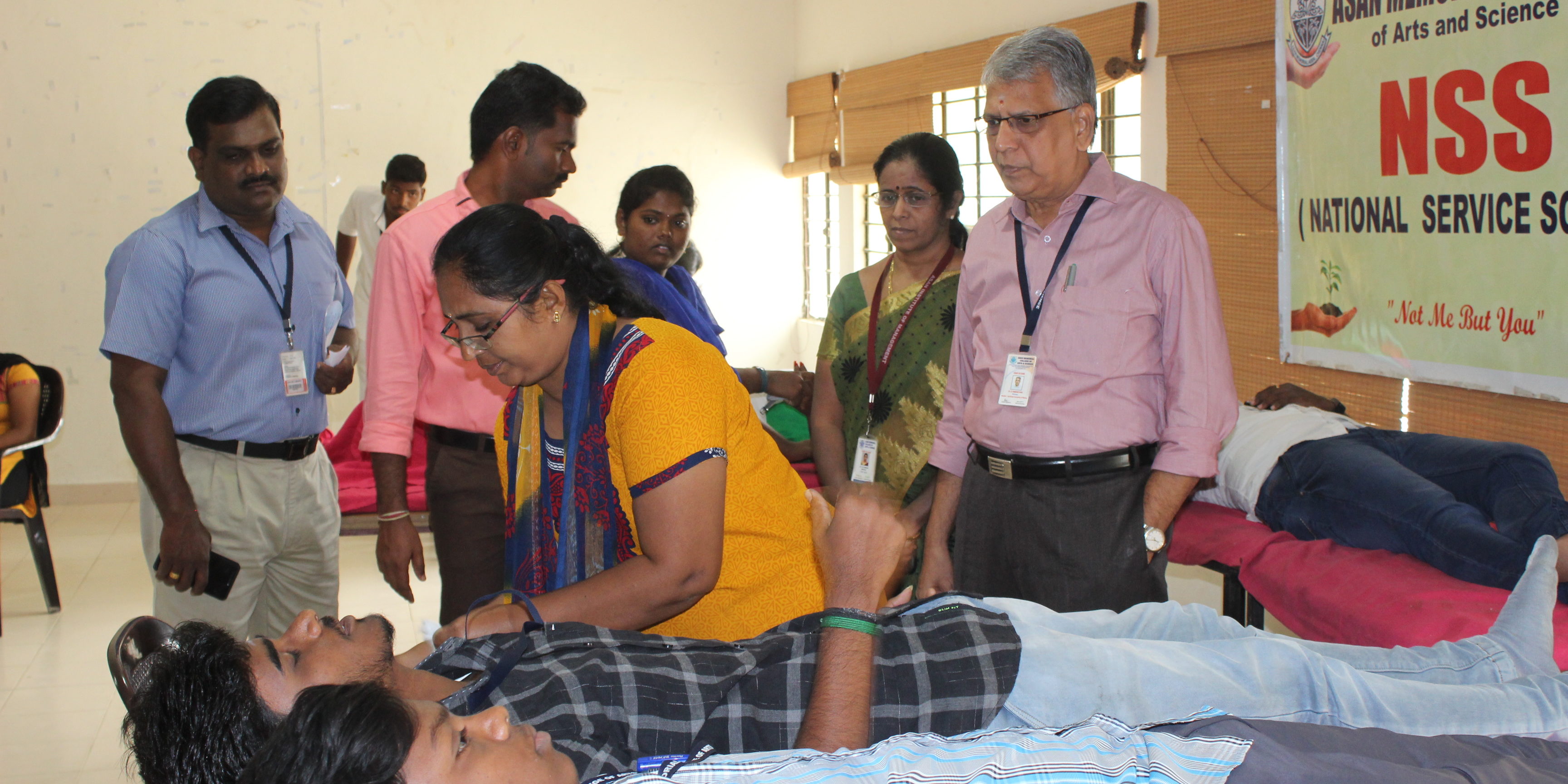A Blood Donation Camp was organized by the NSS, RRC and YRC unit of Asan Memorial College of Arts & Science, Pallikaranai, Chennai-100 on 29.01.2019. Students, Professors and volunteers of the college participated enthusiastically and donated 173 units of blood to the Indian Red Cross Society, Tamilnadu Branch. This camp was presided by Dr. S. Ramanathan, Principal, Asan Memorial College, Member- Syndicate, University of Madras. Prof. G. Bhaskaran, coordinator, NSS, RRC, YRC, University of Madras, was the chief guest. Pulavar R.Manikkam, Secretary, Indian Red Cross Society, Kanchipuram District and Dr.R. Chandra, Indian Red Cross Society, gave a speech. The camp was sucessfully organized by Dr. P. Ramesh Kumar, Dr.I.Arulpandi and Dr.Y. Beulah Jeba Jeya.