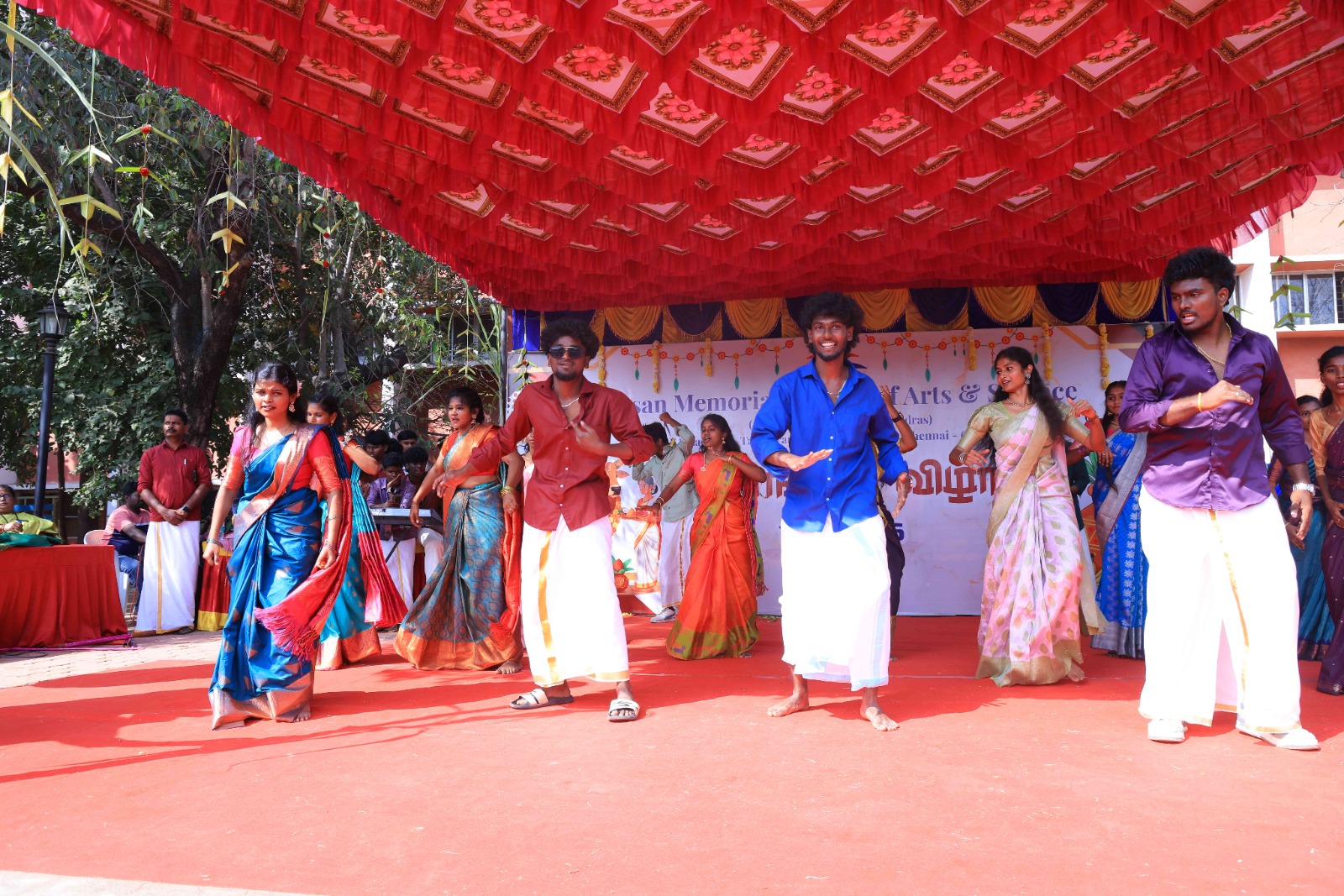Asan Memorial College of Arts & Science celebrated the harvest festival of Pongal in a spectacular manner on 13th January 2026 in the college premises. As a part of the festivities, various traditional competitions like Pongal Vaithal, Pulli Kolam, Karumbu Udaithal, Uri Adithal and Ilavattakkal, Tamil traditional cooking competitions were conducted. Students adorned in traditional costumes, participated with great enthusiasm and fervour. Traditional South-Indian folk art performances were presented by students, sustaining the lively spirit of the three-day harvest festival. The Pongal Vaithal event was a highlight, with students taking on the role of cooks, blending humble ingredients and cooking them in clay pots over an open flame to create a delicious Pongal. The Tamil Traditional cooking competition deserves a spotlight for showcasing the team effort of the teaching, non-teaching staff and students. Dr. T. S. Santhi, Principal, Asan Memorial College of Arts & Science presided over the function and distributed the prizes to the winners. The event was organised by Dr. P. Ramesh Kumar, Head, Department of Languages and it was a grand success.