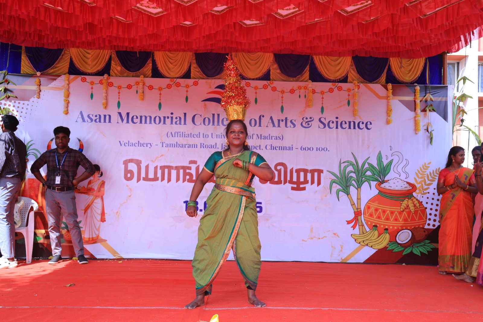 Pongal Celebrations were organised at Asan Memorial College of Arts & Science in a superlative fashion on 12th January 2024 in the college premises.  Students clad in colourful traditional outfits participated in a wide range of traditional competitions including Pongal Vaithal, Pulli Kolam, Karumbu Udaithal, Uri Adithal and Ilavattakkal.  There is something particularly delightful about Pongal Vaithal, where student turned cooks, mingled an eclectic collection of humble ingredients, traditionally cooked it together in firelit clay pots and served up as delicious Pongal. Traditional South-Indian folk art were performed  by students as a part of the festivities, kept upbeat the spirit of the three day harvest festival. Tapping the entrepreneurial skills of students, the kiosks at Pongal Sandhai were a centre of attraction among students and staff members. Mr.  VST Promise Ambethkar, Entrepreneur and a Proud Asan Alumni graced the occasion and distributed  the prizes to the winners. Dr. T. S. Santhi, Principal, Asan Memorial College of Arts & Science presided over the function.  The event was organised by Dr. P. Ramesh Kumar, Head, Department of Languages and it was a grand success.