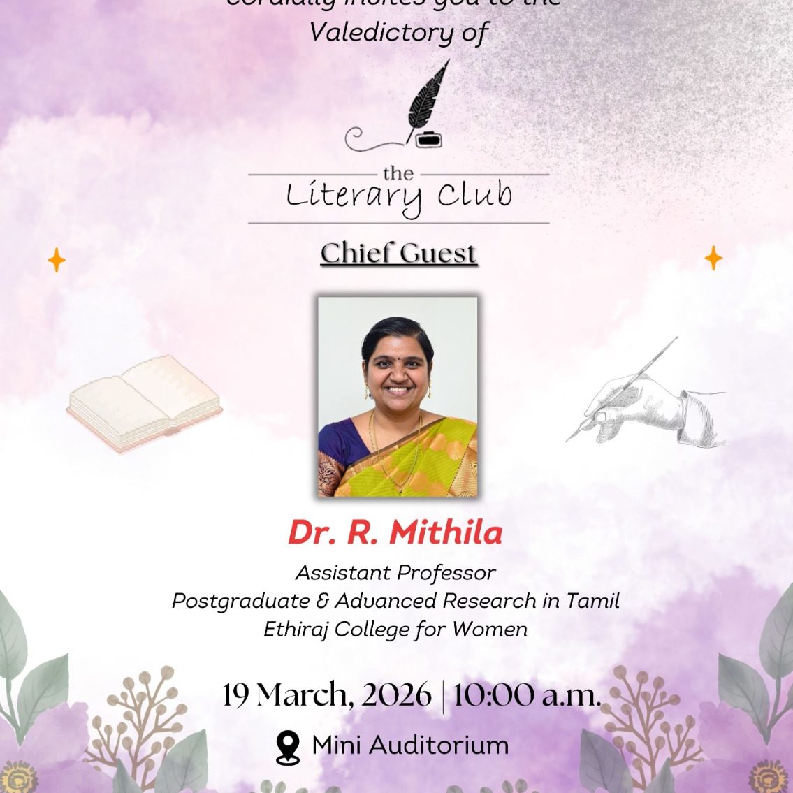 வணக்கம். செம்மொழித் தமிழாய்வு மத்திய நிறுவனமும் ஆசான் நினைவு கலை மற்றும் அறிவியல் கல்லூரியின் திருவள்ளுவர் தமிழ் இலக்கிய மன்றமும் இணைந்து நடத்தும் பாரதியார் பிறந்த நாள் விழா கல்லூரி மாணவர்களுக்கான பேச்சுப்போட்டி பாருக்குள்ளே நல்ல நாடு எங்கள் பாரத நாடு என்னும் தலைப்பில் 05 – 01 – 2024 (வெள்ளிக்கிழமை) இன்று நடைபெற்றது. இந்நிகழ்விற்குக் கல்லூரி முதல்வர் முனைவர் T.S. சாந்தி அவர்கள் தலைமையுரை வழங்கினார்.