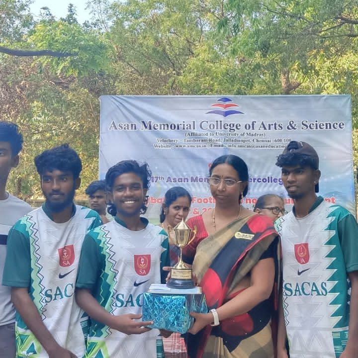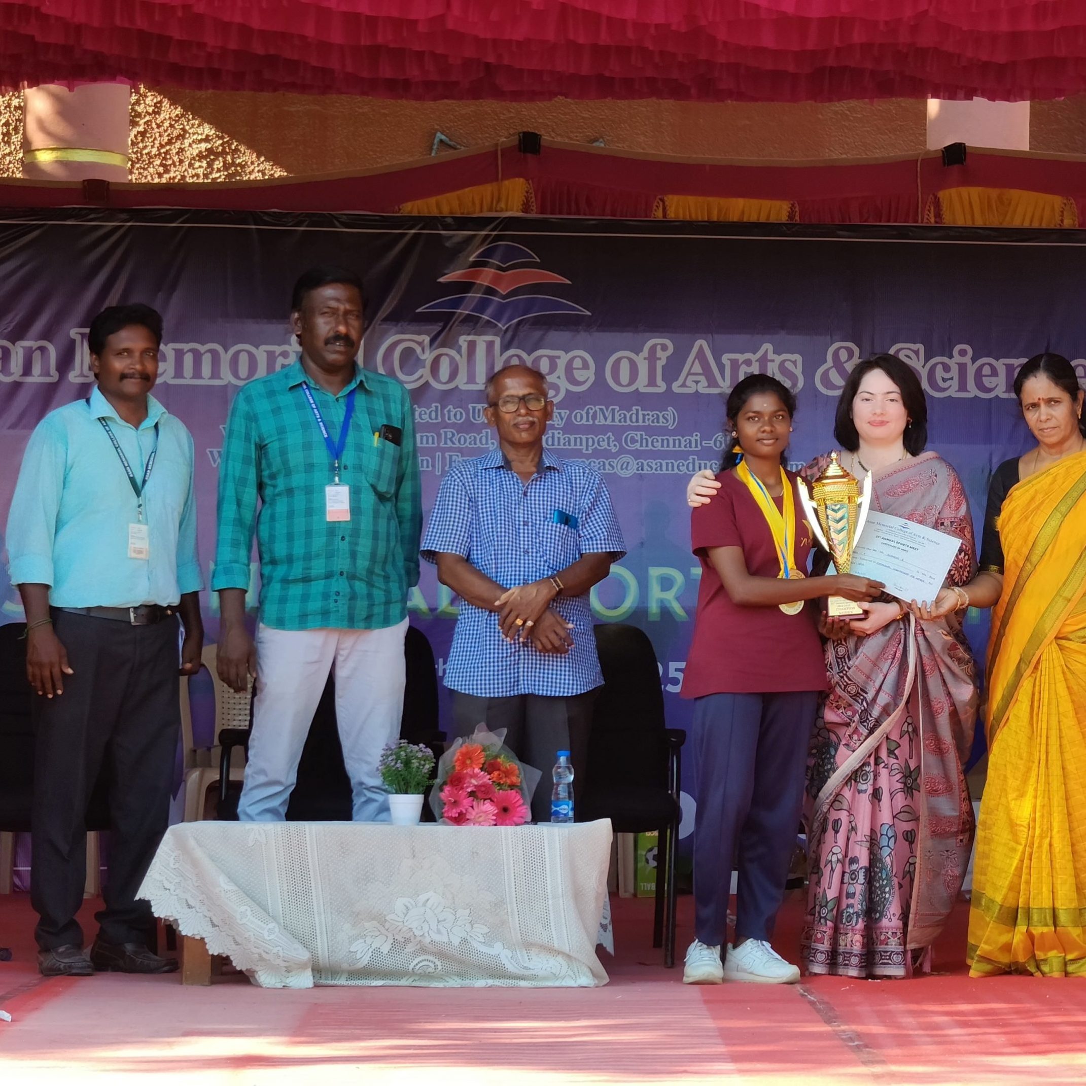 - The 29th Annual Sports Meet of Asan Memorial College of Arts and Science was celebrated on 16th March 2022. The Chief Guest, Mr. R. Balasubramani, Former Indian Volleyball Player & Manager, IOB , Mahalingapuram Branch in his address stressed on the importance of sports and games for a healthy lifestyle. Dr. T.S. Santhi, Principal, rendered the welcome address to the gathering. Mr.K.Giridharan, Director of Physical Education presented the Annual Sports Report. The Chief Guest delivered the Sports Day address and distributed the prizes to the winners of various games. The Individual Championship for Men was awarded to A. Tejas, III BBA and the Individual Championship for Women was won by S. Indhumathi of III B.Com (G) (Shift- II). The overall championship was bagged by B.B.A for Shift – I & B.Com (G) (Shift- II)
