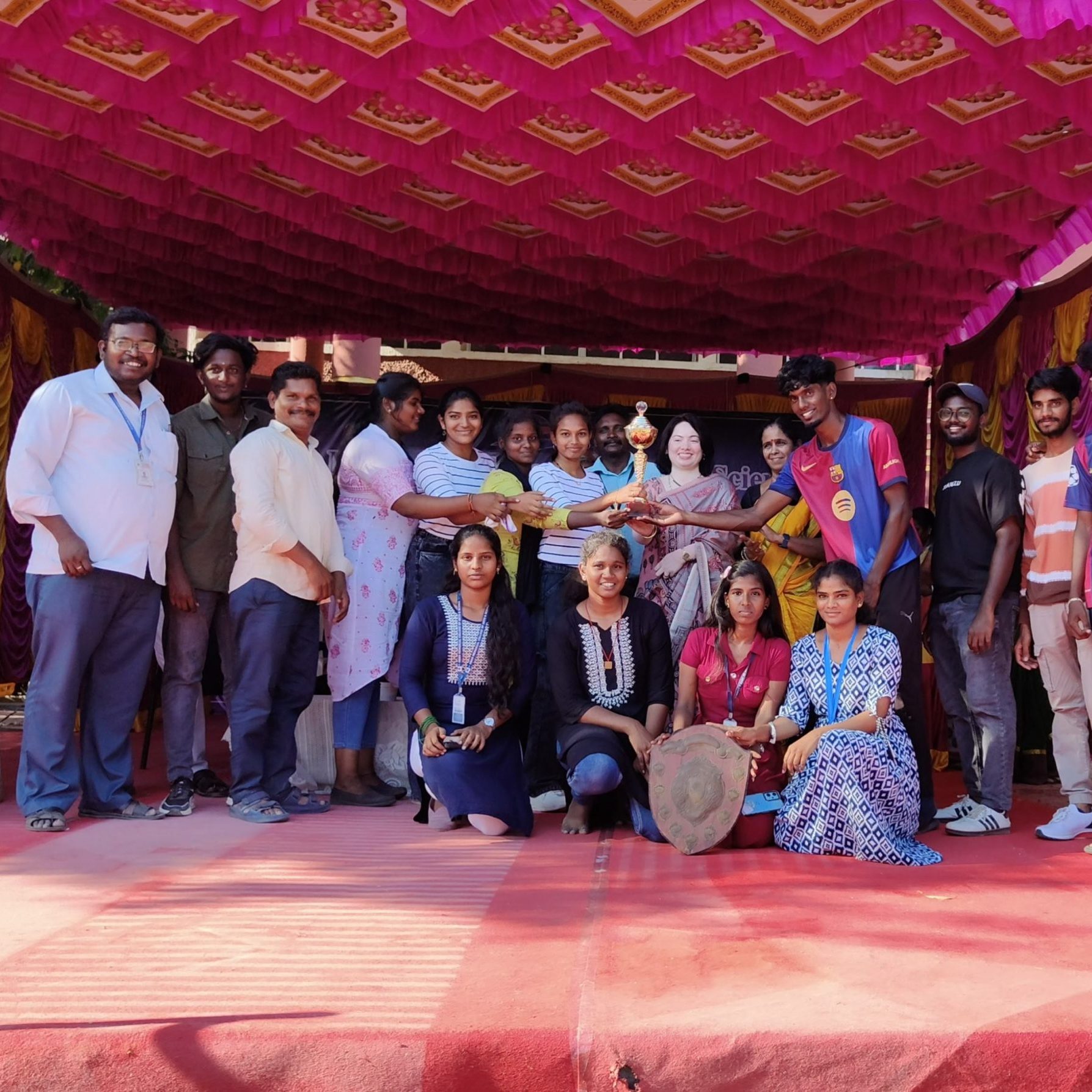 The grand occasion was graced by the presence of the esteemed Chief Guest, Mrs. Kavya Dhanapal, a BCCI-certified coach. In her inspirational address, she commended the participants and especially encouraged female students to aim high and break barriers in sports. Mrs. Kavya also distributed prizes across various categories, celebrating their dedication and achievements. R. Anandhi of 1st BBA, won the individual championship for Women and M. Madhan, of 3rd BSc. Visual Communication, won the individual championship for men. The overall championship was bagged by the team Emerald.