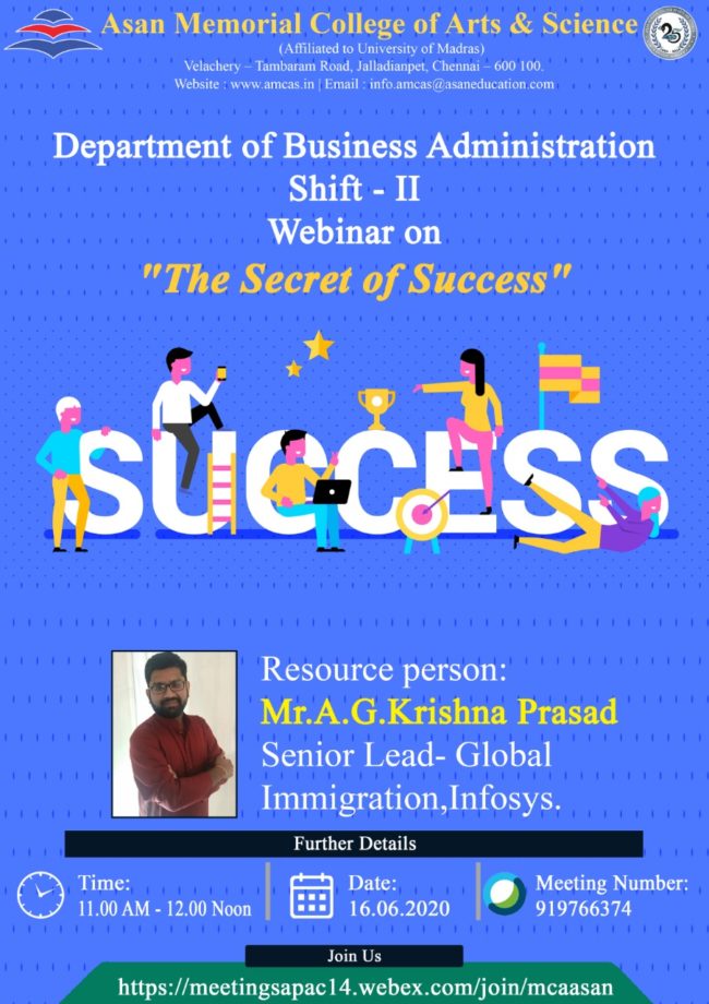 “The Secret of Success” – Webinar by Department of Business Administration (S-ll) on 16/06/2020
