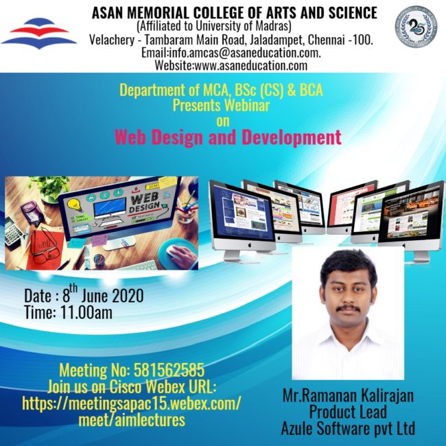 “Web Design and Development” – Webinar by Department of MCA, BCA, B.Sc (CS) on 08/06/2020