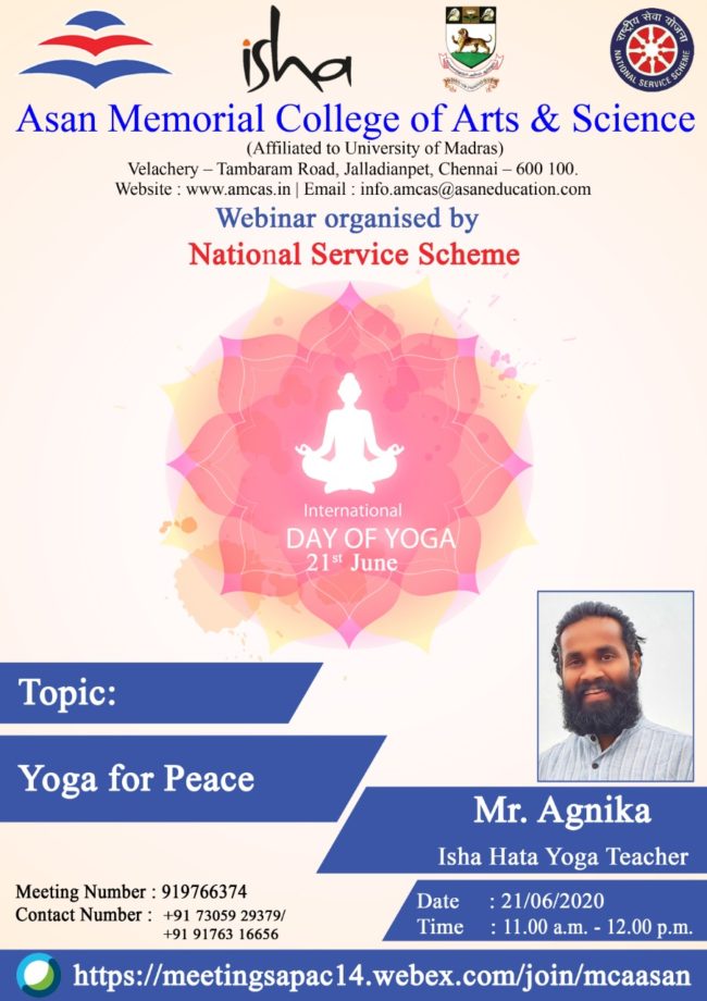 “Yoga for Peace” – Webinar by National Service Scheme (NSS) on 21/06/2020