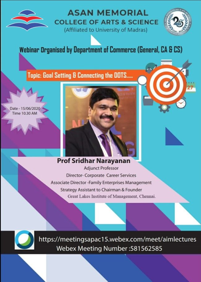 “Goal Setting and Connecting the dots…” – Webinar by Department of Commerce on 15/06/2020