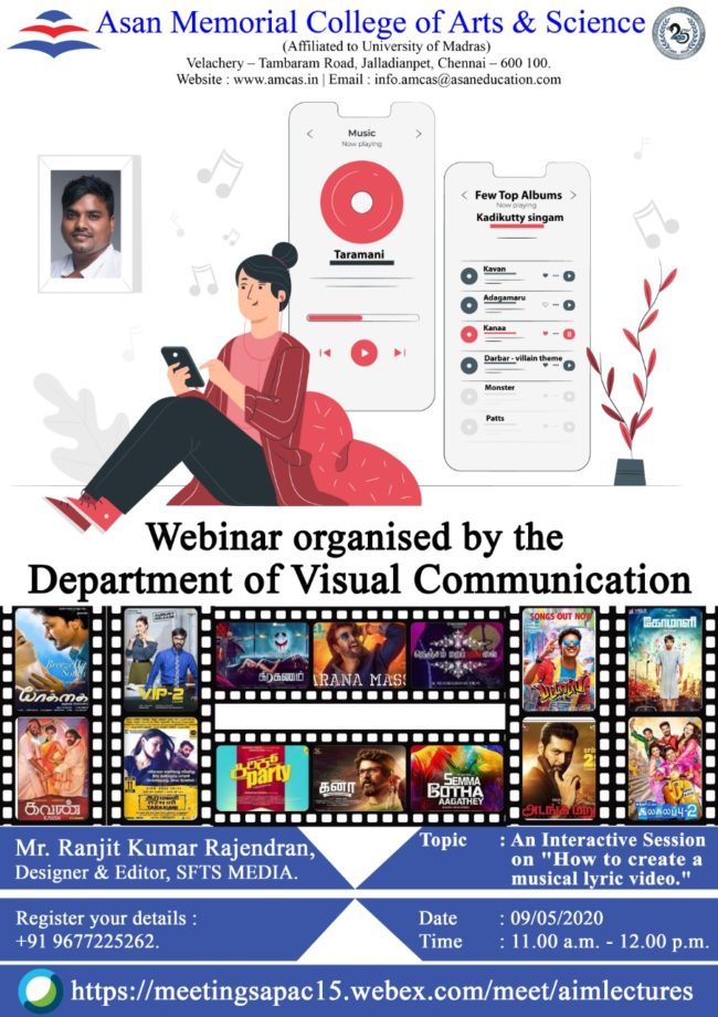 “An Interactive Session on “How to Create a Musical Lyric video” -Webinar organizing by Department of Visual Communication on 09/05/2020