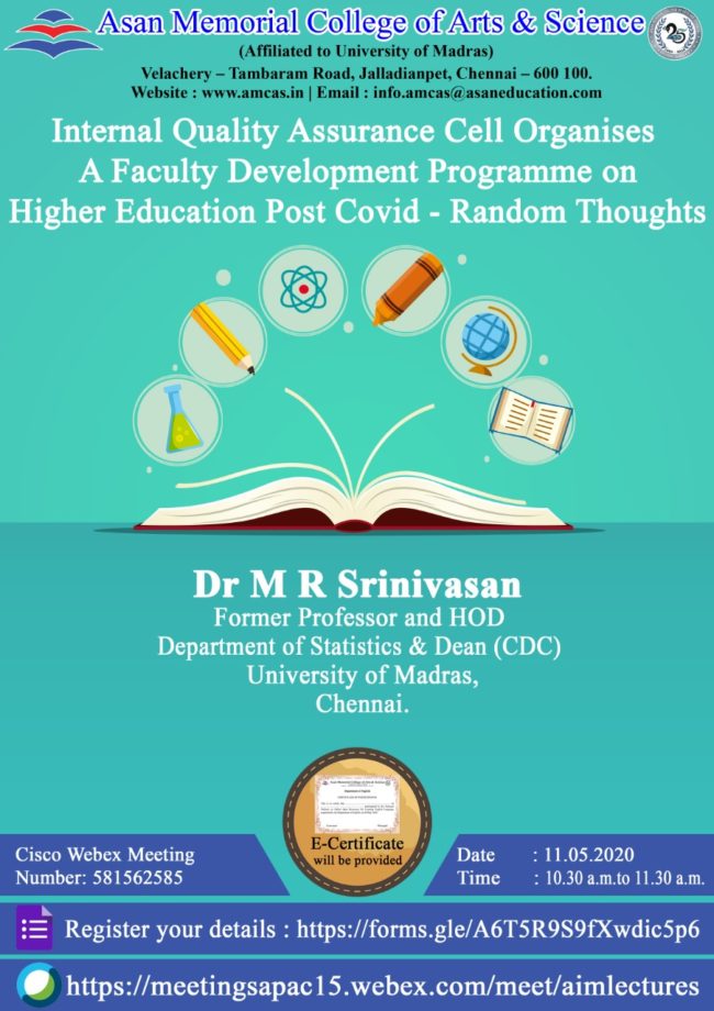 “FDP on Higher Education Post COVID-Random Thoughts” -Webinar organizing by Internal Quality Assurance Cell on 11/05/2020