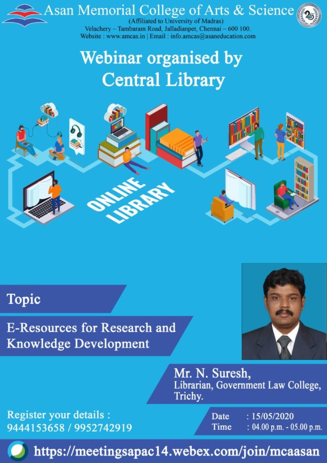 “E-Resources for Research and knowledge Devolopment” ” -Webinar organizing by Central Library on 15/05/2020