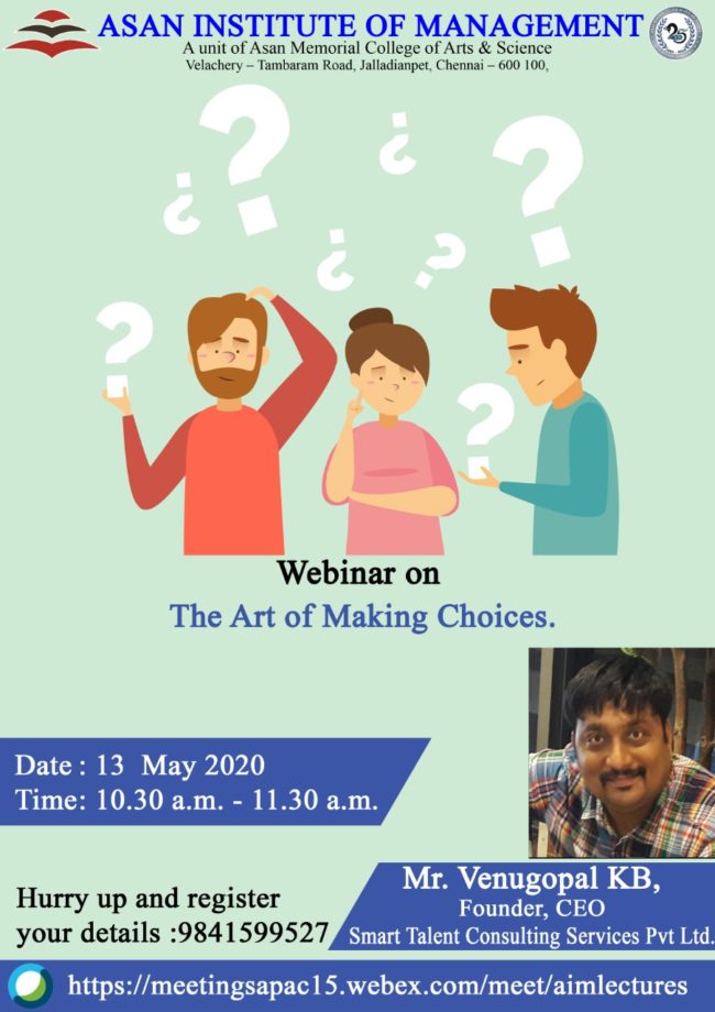 “Art of Making choices ” -Webinar organizing by Asan Institute of Management on 13/05/2020