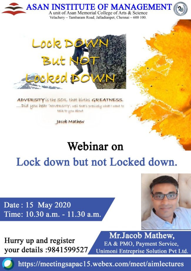 “Lock down but not Lock down” -Webinar organizing by Asan Institute of Management on 15/05/2020