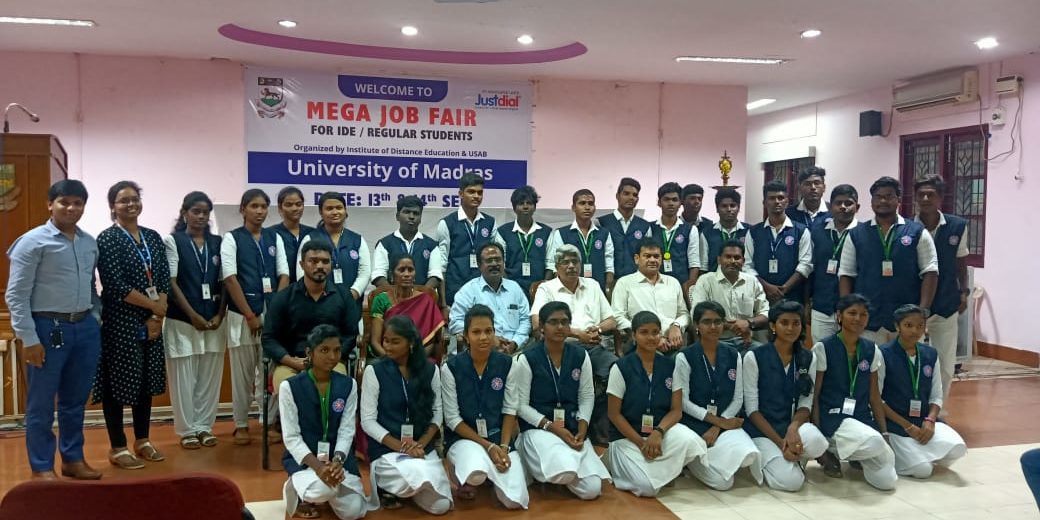 Dr.P.Ramesh kumar, NSS Programme officer and 30 NSS Volunteers of Asan Memorial College of Arts & Science Volunteered and service in the MEGA JOB FAIR.The program was organised by Institute of Distance Education and University Students Advisory Bureau (USAB), University of Madras on 13th September 2019.