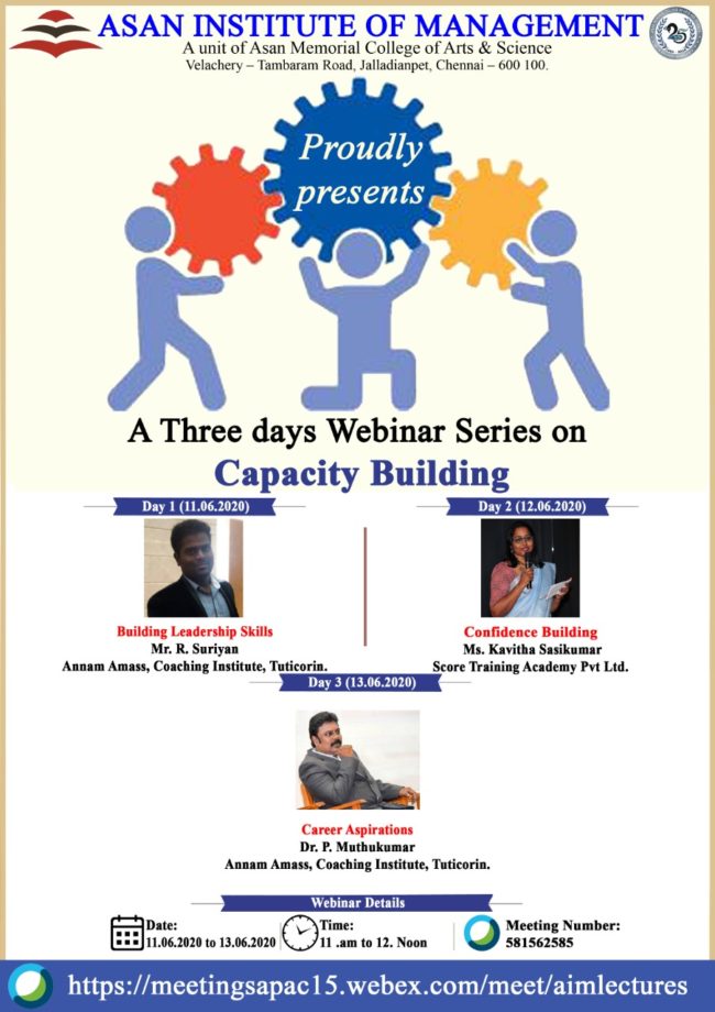 “Capacity Building ” – A Three-day Webinar Series by Asan Institute of Management on 11/06/2020, 12/06/2020 & 13/06/2020