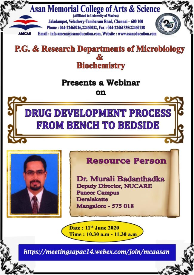 “Drug development process from bench to bedside ” -Webinar by P.G. & Research Departments of Microbiology & Biochemistry on 11/06/2020