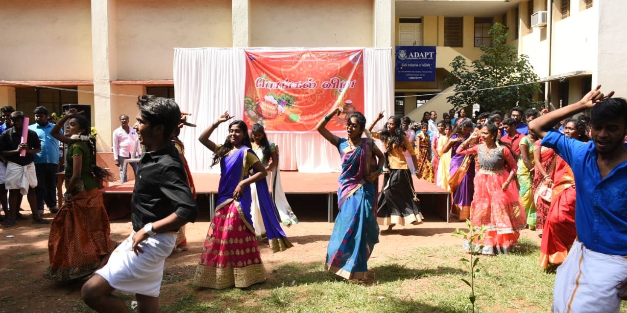 A grand Pongal celebration was conducted on 11th January 2020. Various competitions like Pongal cooking contest, Pullikolam, Uriadithal and Ilavattakal were conducted. Students performed traditional Tamil Art forms like Nattupura paatu and Folk dance. The college had a festive look with Pongal Sandhai stalls selling tasty traditional savouries and other treats.
