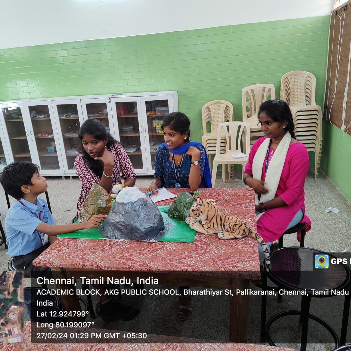 Observatory visit – As a part of the curriculum, intending to enhance practical learning for students, the Dept. of Psychology has organised a visit to AKG Public School on 27-02-2024 from 9.30 am to 1.30 pm, with a motive to observe the children’s behaviour. Here, students designed various experiments ( Three mountains task, Conservation of matter, Animation, Categorisation, Pretend play etc.) to assess the cognitive ability of the kindergarten, I & II standard students and administered it to the children referring to Piaget’s theory on pre-operational stage.