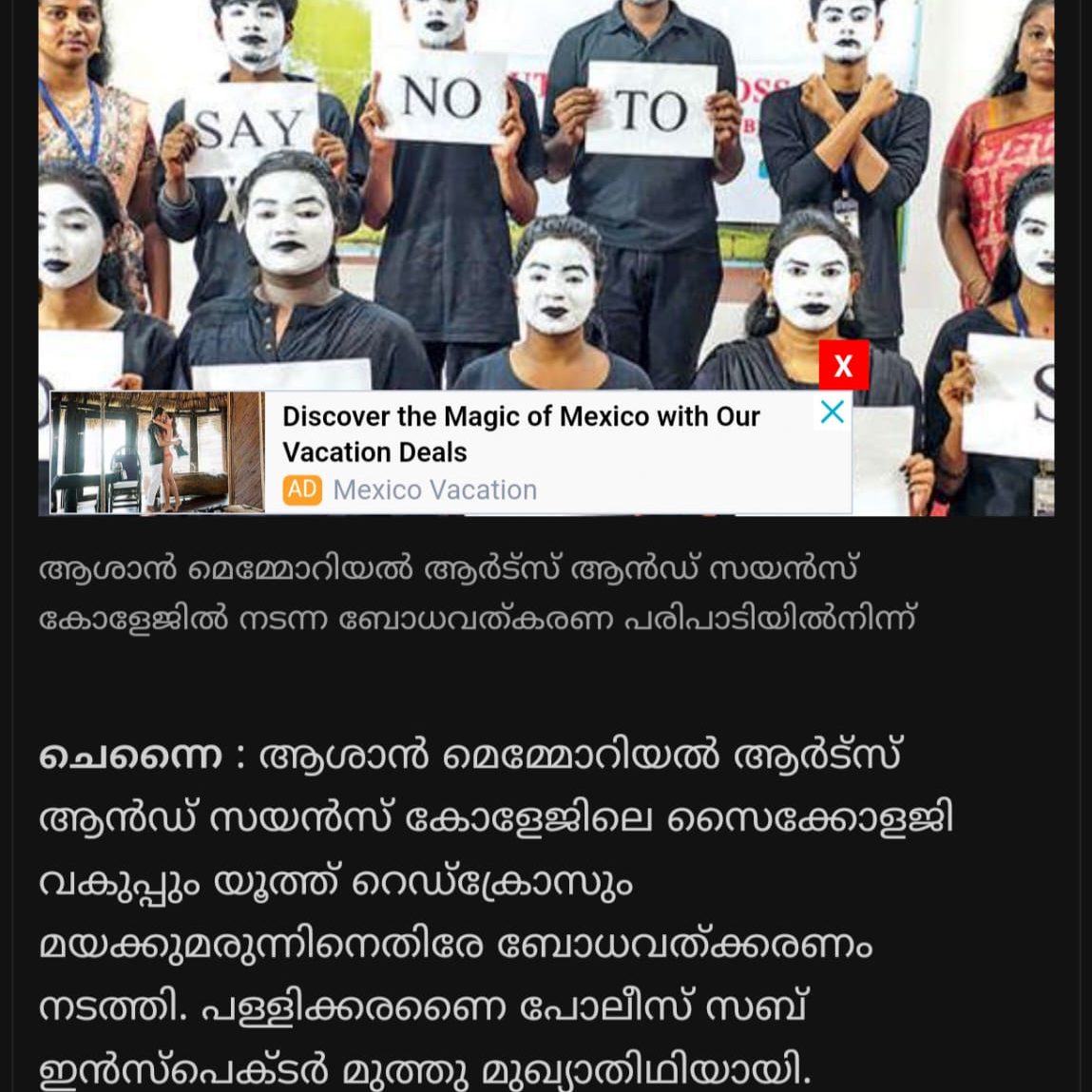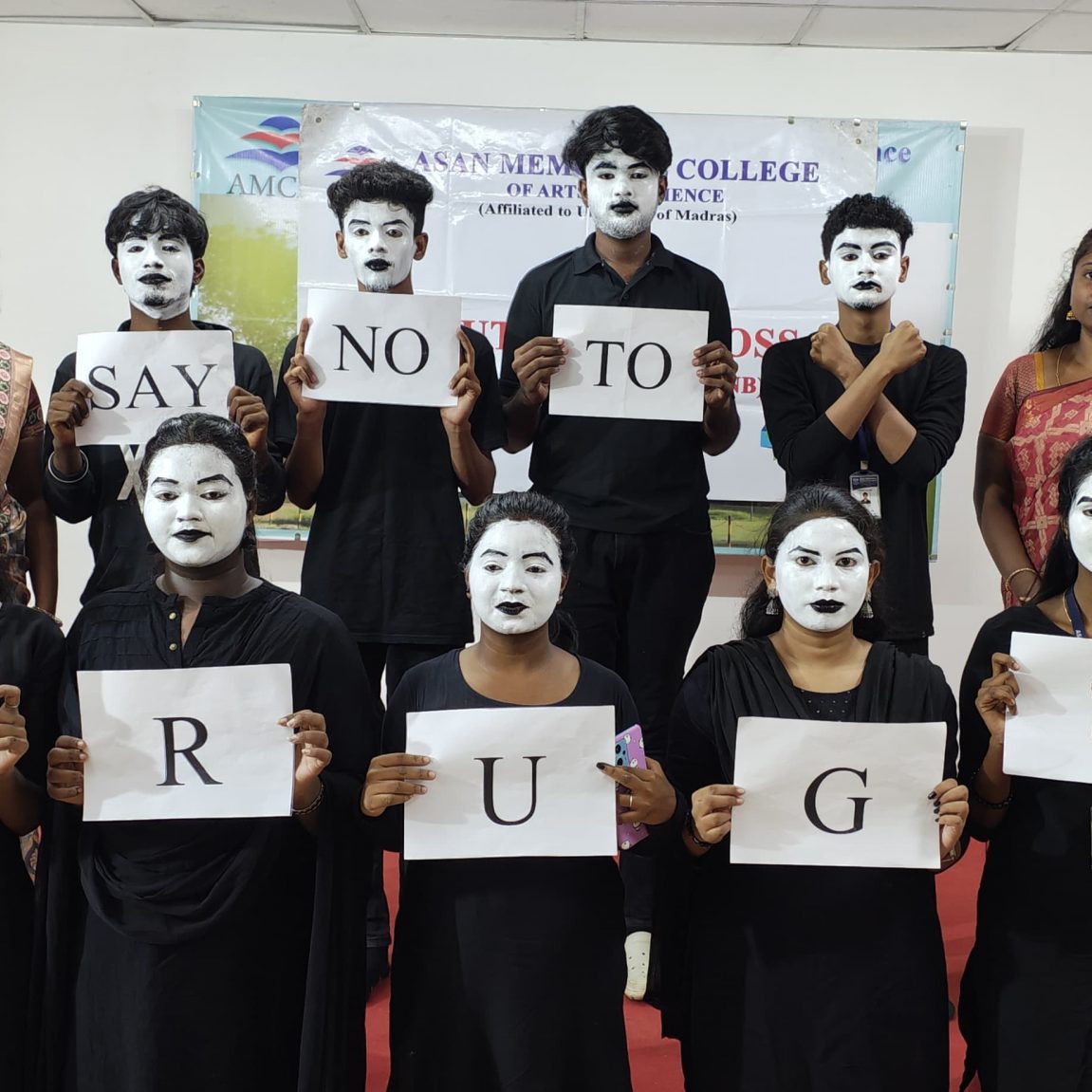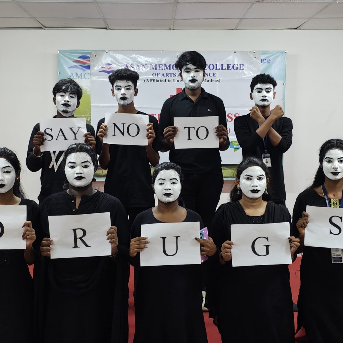 The Department of Psychology and Youth Red Cross of Asan memorial college of arts & science observed International Day against Drug Abuse and Illicit Trafficking on 26th June 2024. The Principal of the college presided over the function and Pallikaranai Police Sub Inspector Mr. Muthu kumar addressed the student gathering stating the importance of voluntary restraint from drug abuse in any form. He also added that intake of illicit drugs is the prime cause of many criminal activities and suggested drug awareness as the need of the hour. Several other events like mime, drama, awareness presentations were made by the students, emphasising the importance of drug abstinence. The programme was a grand success.