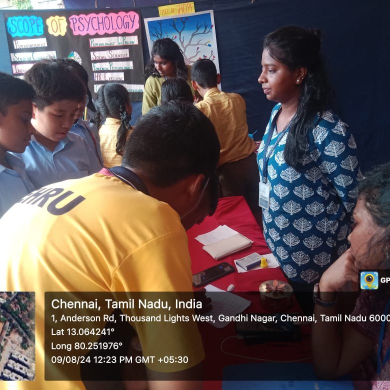 The Department of psychology from Asan Memorial College of arts and science participated in the GENESIS event held for two days at Asan memorial Secondary school. Here some of the activities were organised, in order to promote and advocate the scope of psychology. On the first day, we conducted three mental exercises- Master mind (Memorizing Shapes, Chunking words and Stoop test), Tree of hope (Transforming Negative to Positive Affirmations), Place & Play (connecting the clues and pointing it on world map).