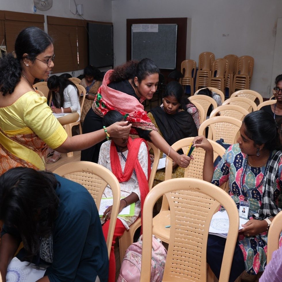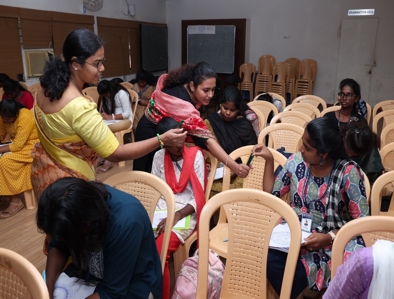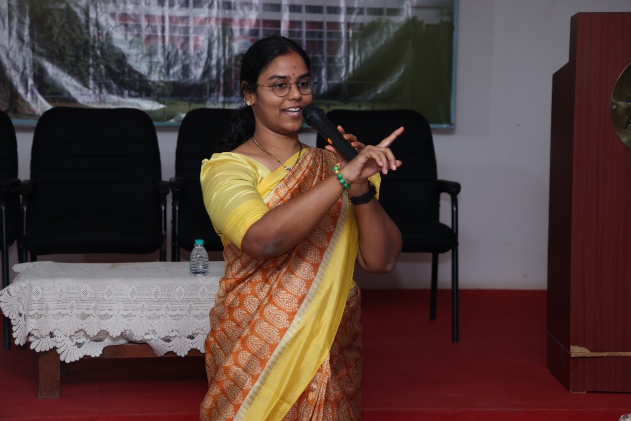 The workshop was facilitated by Ms. Varalakshmi Bharanidharan, an art therapist and Founder of Varaaz Arts Studio. With extensive experience in combining psychology and creative techniques, the resource person guided students through interactive sessions and hands-on activities.