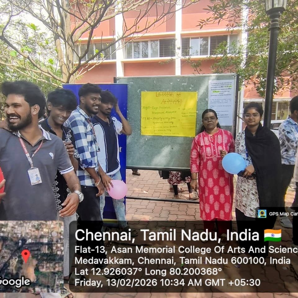 The Department of Psychology, Asan Memorial College of Arts & Science, in collaboration with Dhruti Charitable Trust, organized a “Mental Wellness Awareness Activities” on 13th February 2026 .
