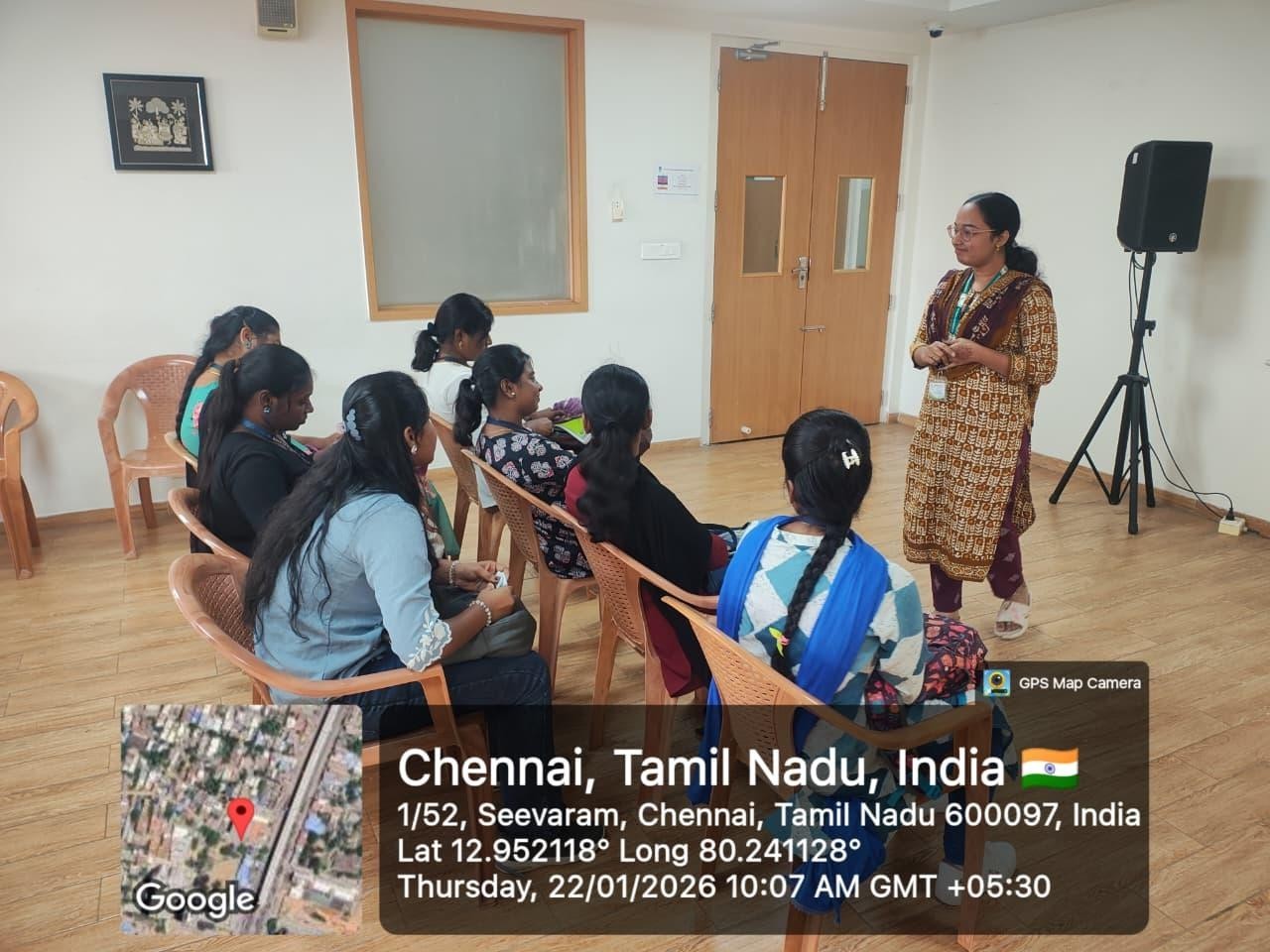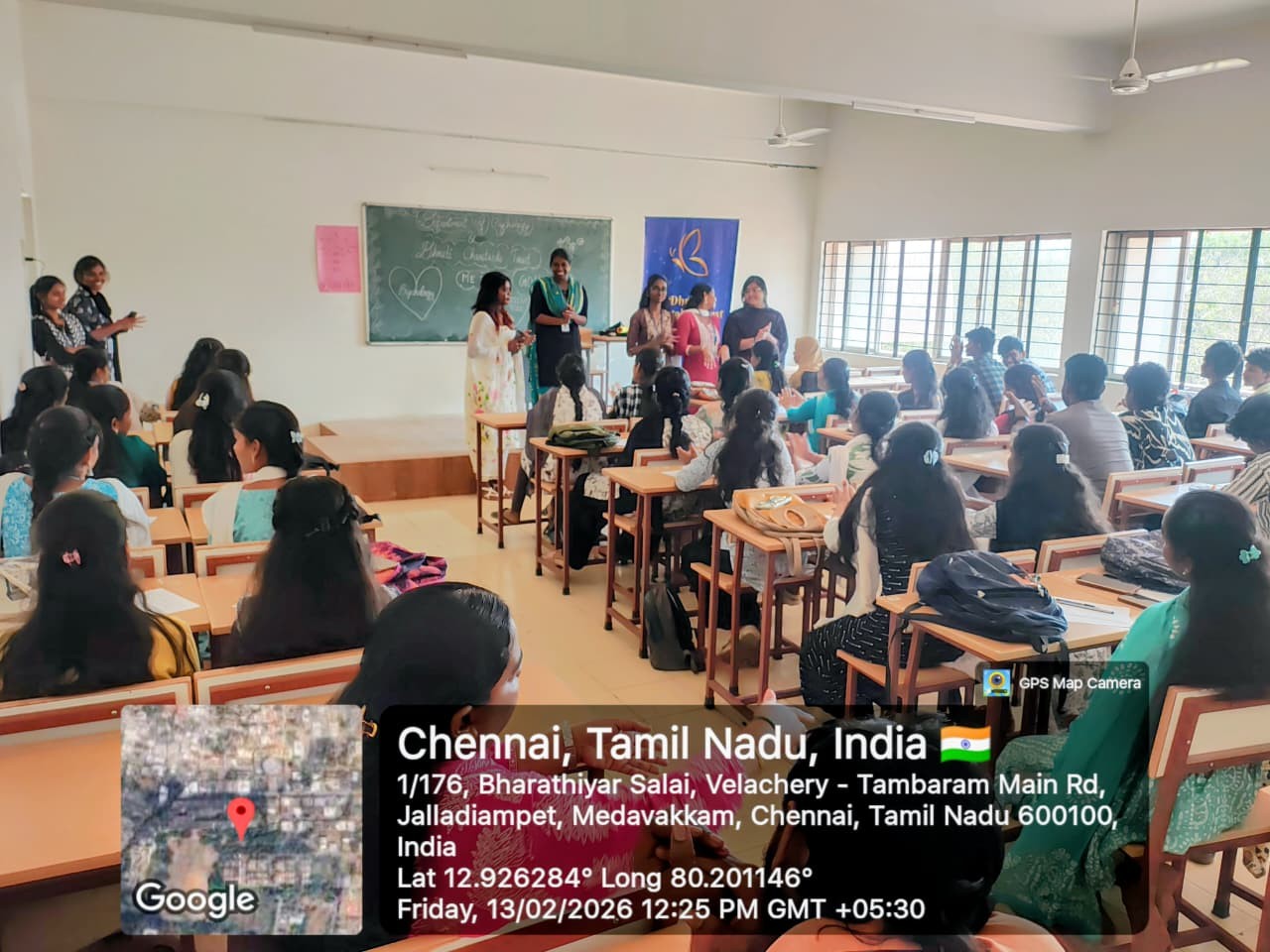 The Department of Psychology organized a Guest Lecture on Rewiring Negative Emotions through Neuro-Linguistic Programming (NLP) on 02.02.2026. The Guest Speaker for this Session is Dr. Kanmani Thivya Mahesh, the Founder of Arise – Shine Counselling Training Services. She is a renowned Counselling Psychologist, Corporate Trainer, Behavioral, Leadership & Career coach, A Motivational speaker and PoSH & POCSO facilitator. The Session aimed to provide valuable insights into the Neuro Linguistic Program and explore the basic components of it.The session was attended by the students of the Psychology and English Department.