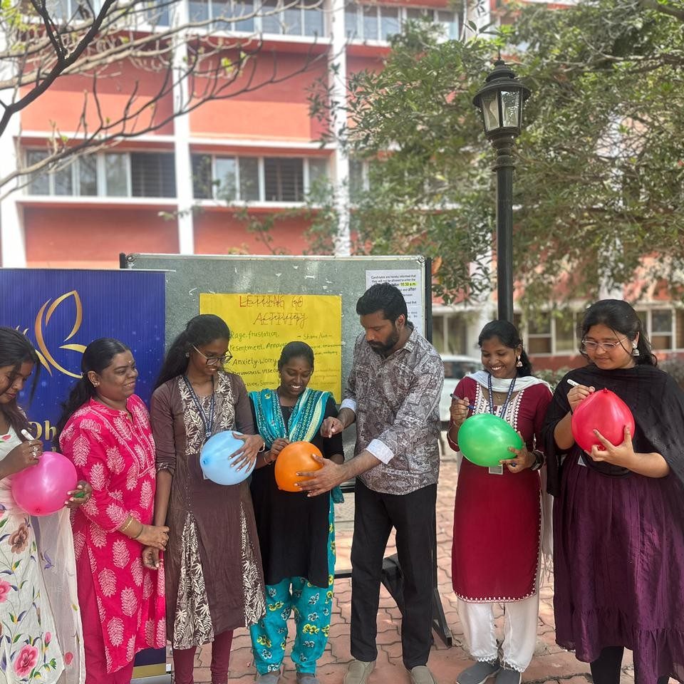 The students from the Department of Psychology conducted different activities for students in the campus to understand themselves, their peers and to know their strengths and weaknesses. They conducted three activities – Letting go off Negative Emotions, this activity focussed on letting go of hard and negative emotions by writing the emotions on a balloon and bursting it. This activity aimed to give a cathartic experience to the students.