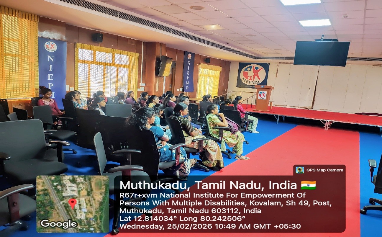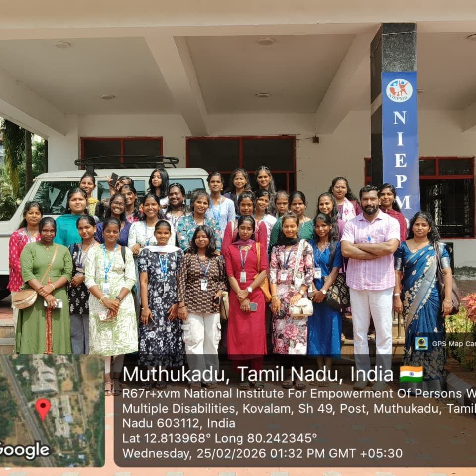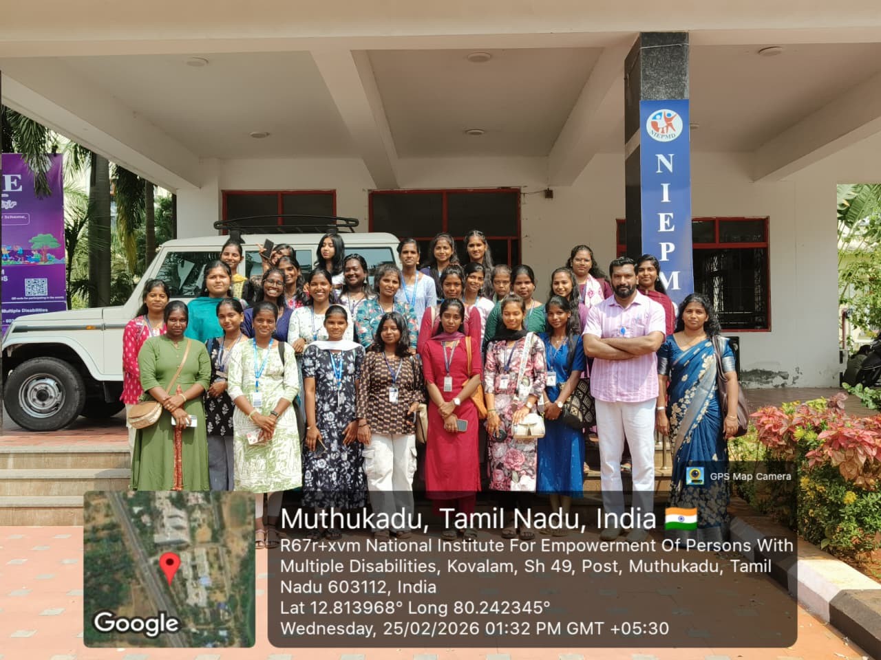 The purpose of this visit was to provide undergraduate psychology students with practical exposure to the rehabilitation processes for individuals with multiple disabilities. NIEPMD, under the Ministry of Social Justice and Empowerment, serves as a premier center for human resource development, research, and patient care in the field of disability.