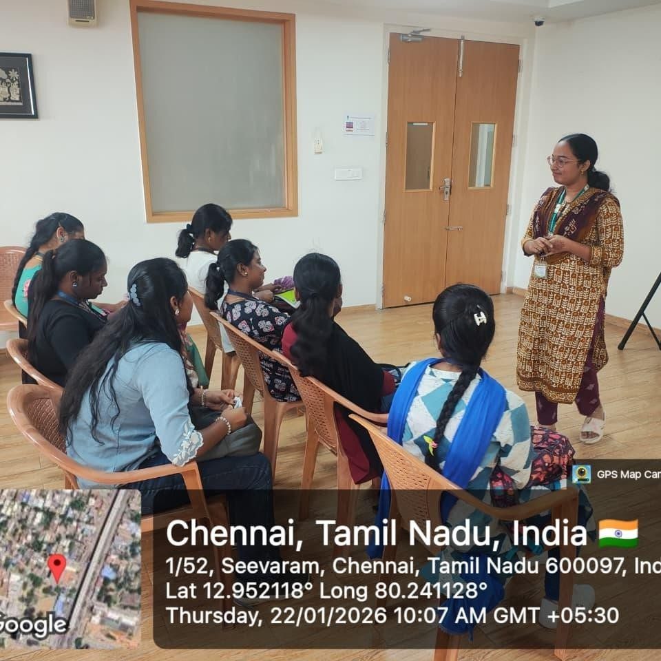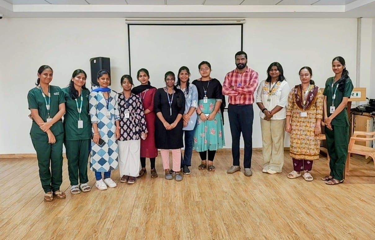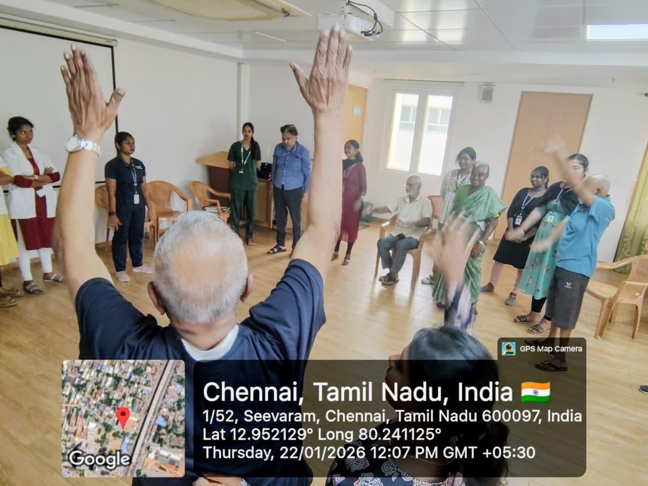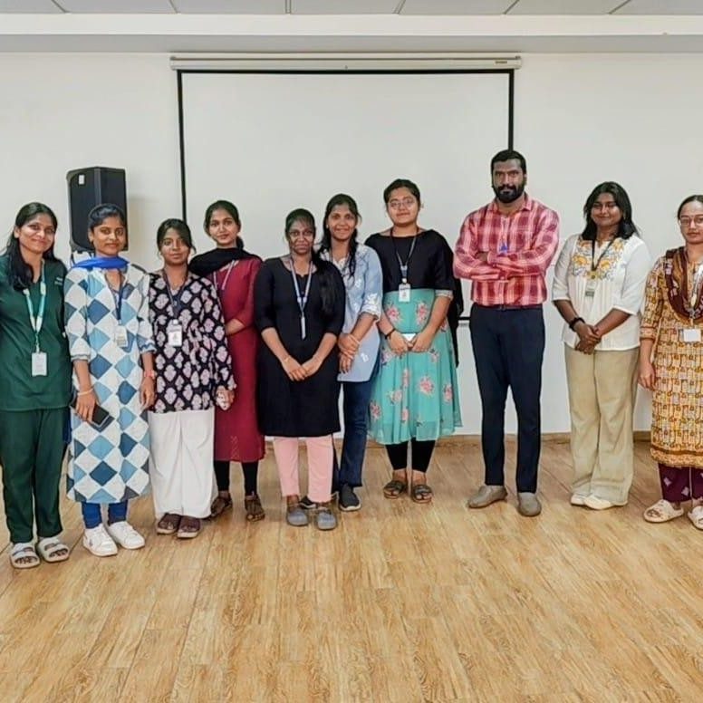 On 25.10.2025, a workshop titled The Mind Theatre was conducted by the Dementia Care Foundation at Curi Hospital in Thoraipakkam from (9 am – 1 pm). The workshop aimed to provide valuable insights into dementia care and explore techniques for engaging patients with cognitive impairments. The session was attended by five students, along with the Head of Department Mr.Rajkumar A, who participated in both the learning and interactive discussions..