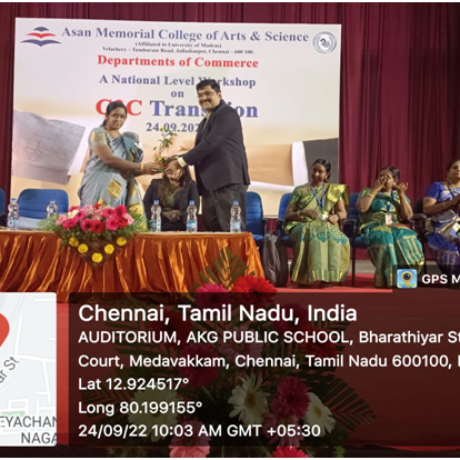 - S. Suganya, Assistant Professor, Department of Commerce, Asan Memorial College of Arts and Science presented a paper in an International Conference on Innovative Practices for Sustainable Development : Business Management and Analytics, titled “Role of Social Media in Building Connections and Changing Consumer Preference in the World”, organized by CMS, JAIN University, Bengaluru in Collaboration with Institute of Analytics, U.K. on 2nd and 3rd September 2022.