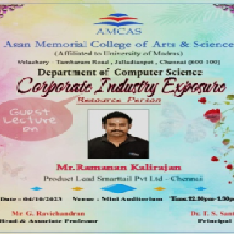 A Memorandum of understanding was signed by the Department of Computer Science, Asan Memorial college of Arts & Science on December 15th 2022 with Cloud Synapse Technologies, Chennai, with the aim to train the students have a hands-on experience on topics like Cloud, Devops, Azure, Kubernetes, Angular, React, , .NET