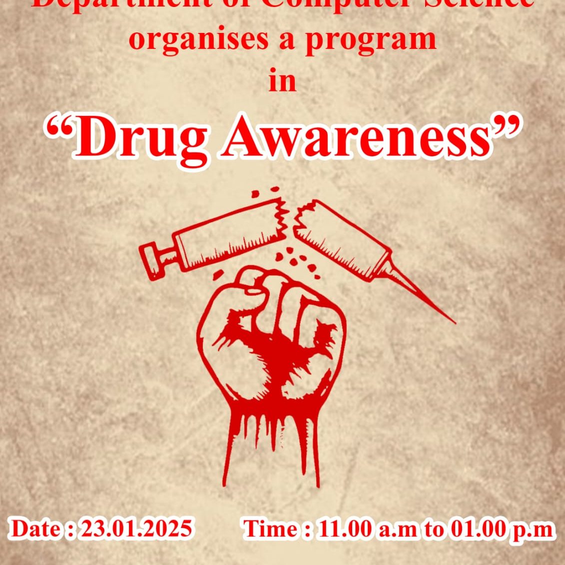 Department of Computer Science organised a Programme in ” Drug Awarness ” on 23rd January 2025