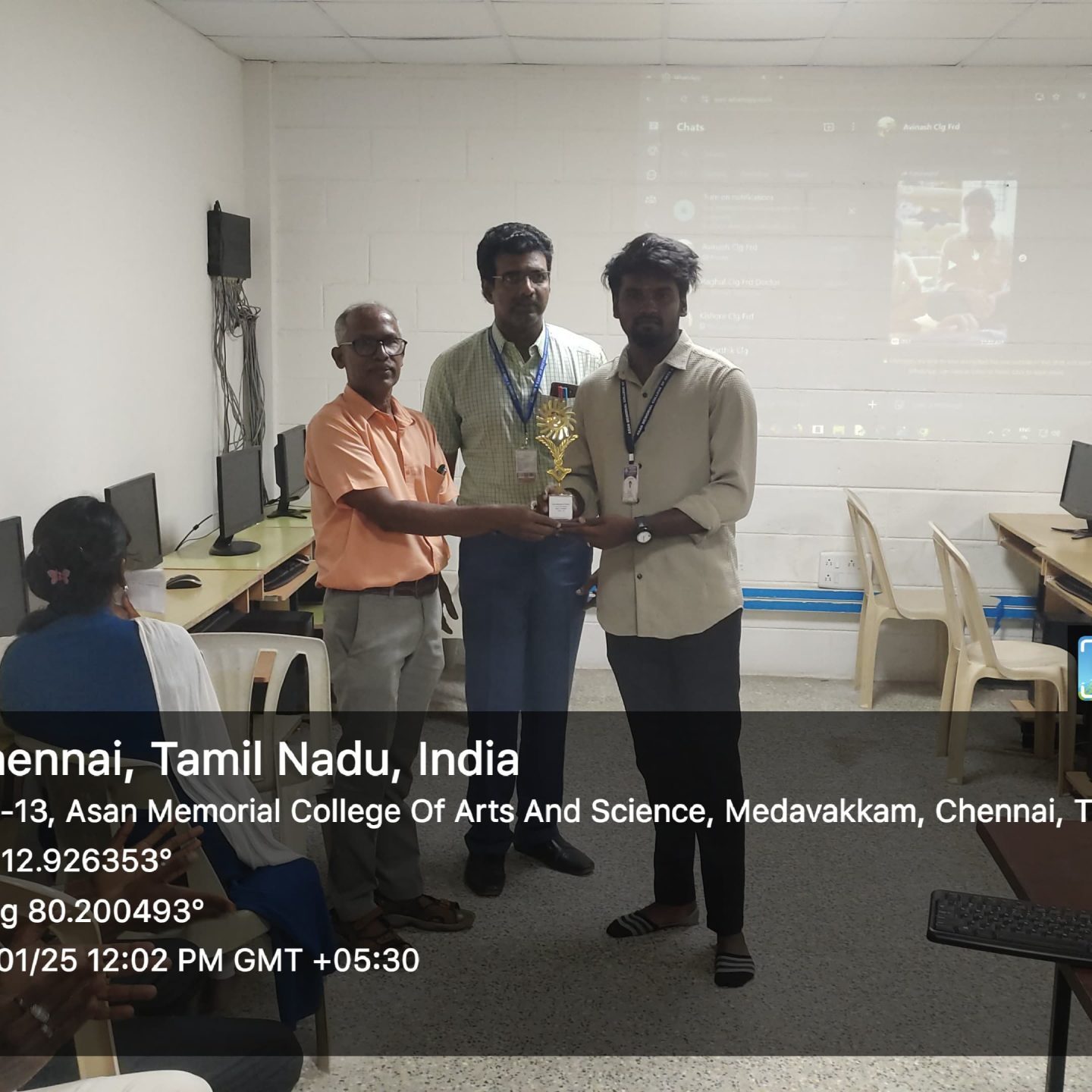 R.Ramachandran, K.Karthikeyan & A.Boobharathi of III B.Sc (CS) got IInd prize for creating one minute video for “Artificial intelligence” in Pozhil Panbalai(Singapore FM)