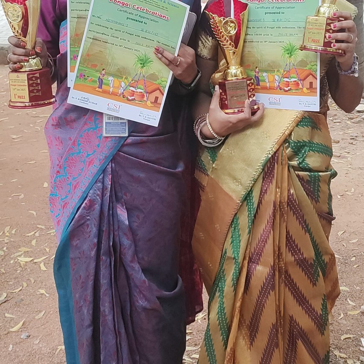 Ms.Nithyamani , Ms. Sanjana and Ms. John Sarone won first prize in “Rangoli” competitions conducted on 12/01/25