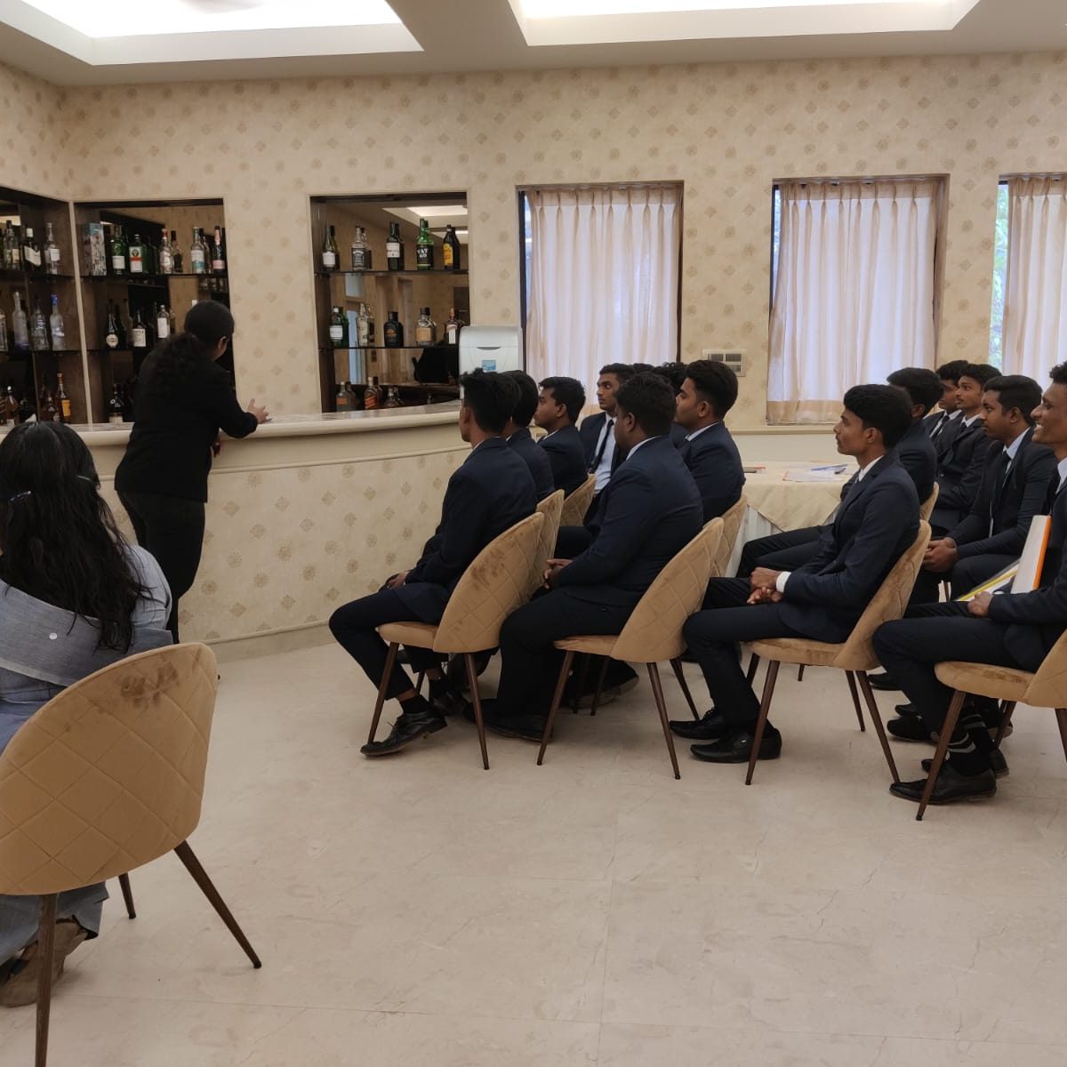 We now have Mr. Nallaswamy from the Chennai Institute of Bartending who takes an extra class for the students on mixology and flaring , so that they not only have the hotel industry required skill but also extra feathers that they could have in their cap such as this class where the learn to flip and juggle bottles. On completion of this course they receive a certificate, Certifying them as basic bartenders, which is always an add on advantage to their resume.