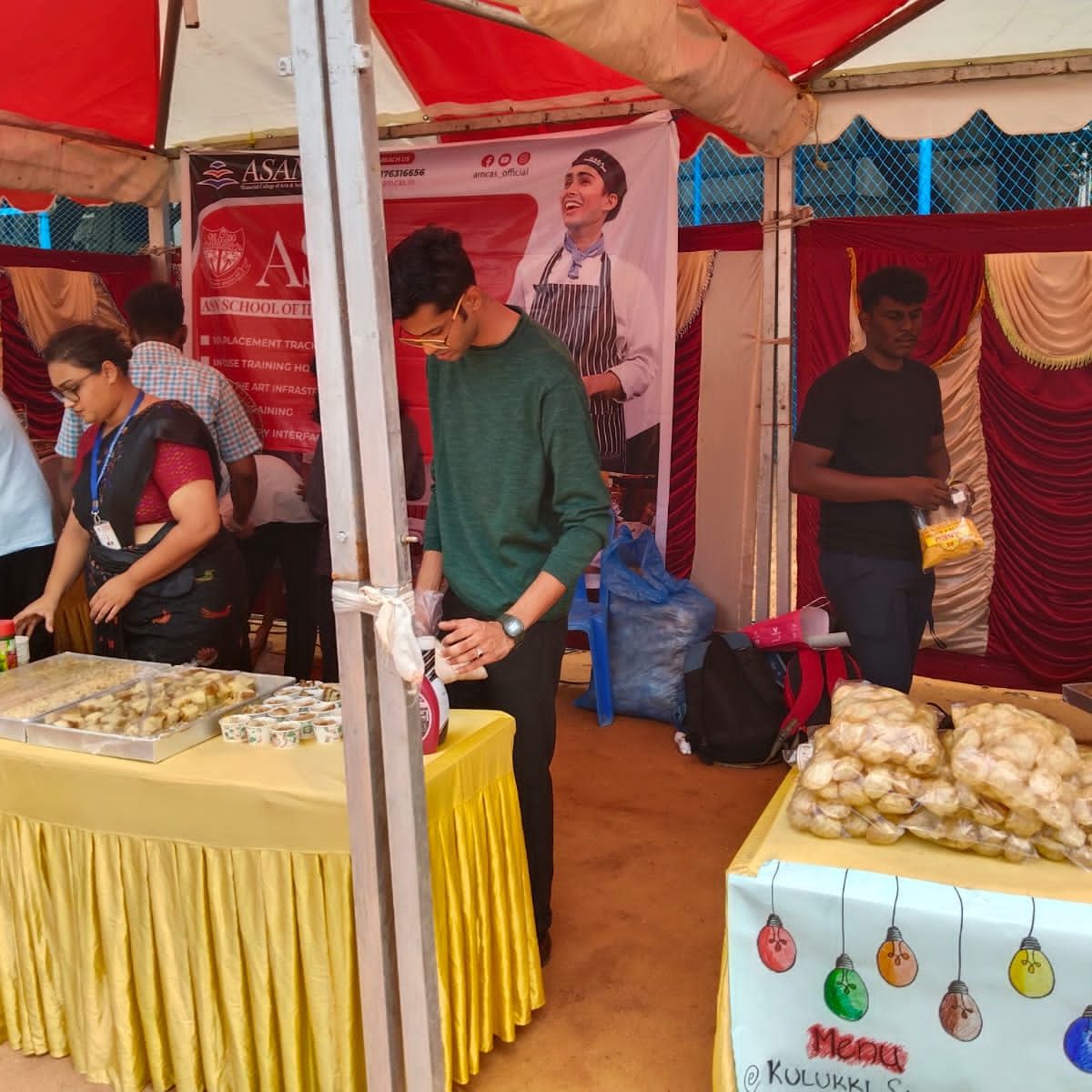 The department with coordination with visual communication organised Madras Street Food on 08/09/2023 from 10.00 am to 4.00 pm. 8 no of stalls were placed based on Madras theme. The following are the stalls