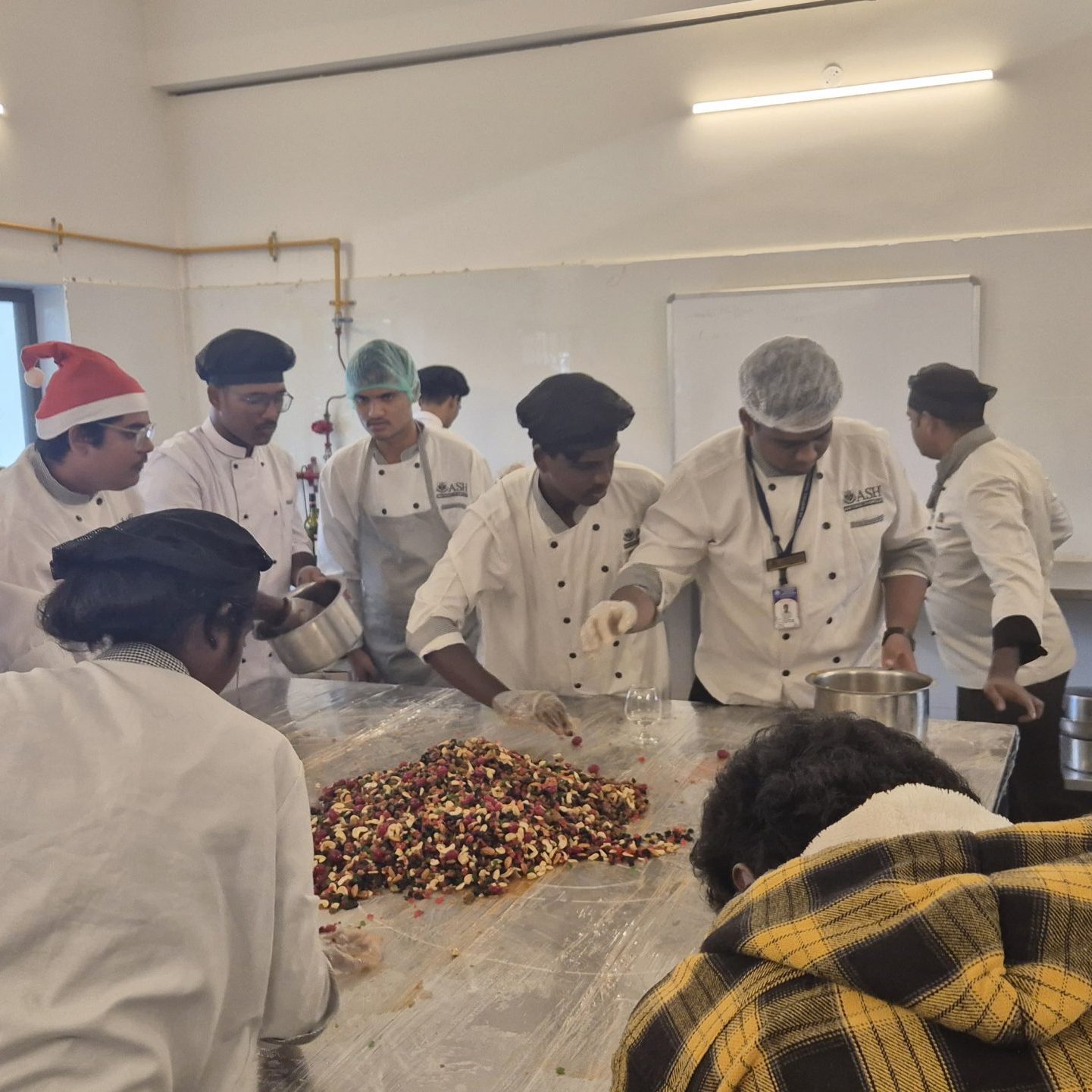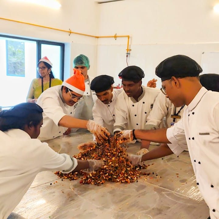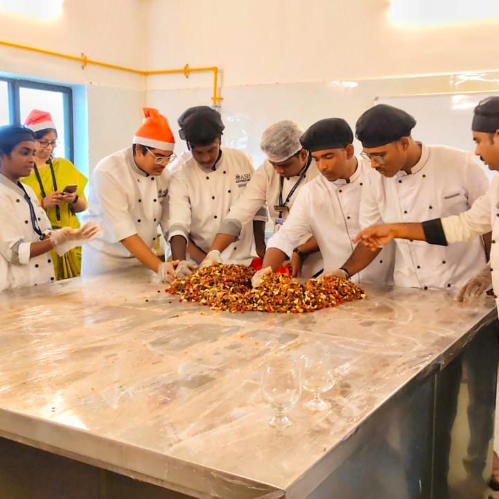 A sweet and flavourful basis for Christmas cakes is created by combining dry fruits, nuts, and spices with wine or rum during the cake-mixing process. On December 19, 2024, the Asan School of Hospitality’s BSC Hotel and Catering Management students marked the start of Christmas Eve with a cake-mixing ceremony.