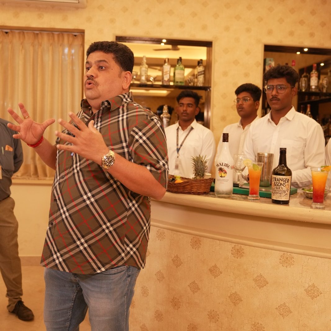 Mr.Harinath who was the brand ambassador for Bacardi in the year 2011 and 6 years following that had been with us and conducted a days workshop on January 31st 2023, for the students on the topic of Knowing origins and basic knowledge on alcohols and spirits . He had also shown the students various cocktail demos where the students were also allowed to make their own mocktails and cocktails.