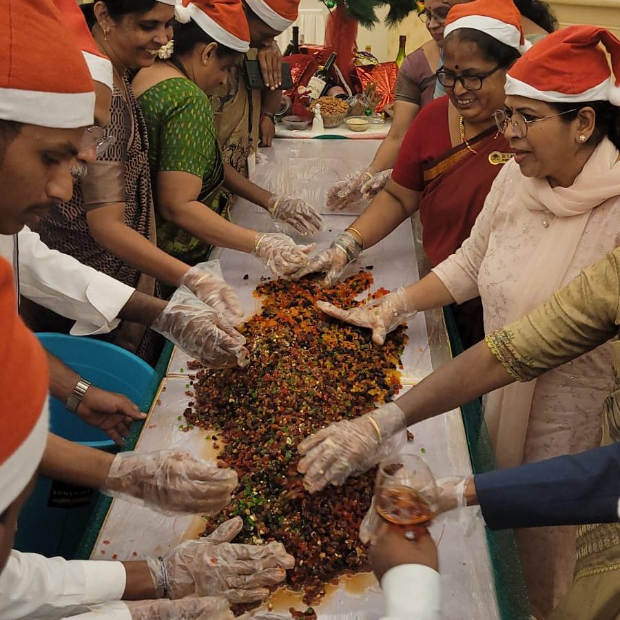 The students organised a cake mixing ceremony as a part of Christmas eve where soaking a delicious array of ingredients in the finest alcohol several weeks before the cakes are baked on 11th Nov 2025