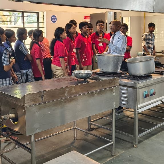 The department of Hotel and Catering Management visited Writer’s Cafe Tharamani as industrial visit on 29/09/23 were the students gained knowledge about the preparation of chocolates, pastry, snacks and etc. They viewed over the kitchen learnt about the maintenance of the area.