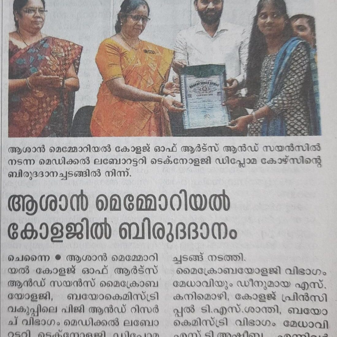 - Mr.T.G.Ajithkumar of I.B.Sc Microbiology participated in ‘NADI’ Literary Competitions 2016 organized by the Department of Malayalam of Asan Memorial College of Arts & Science on 24.08.2016.