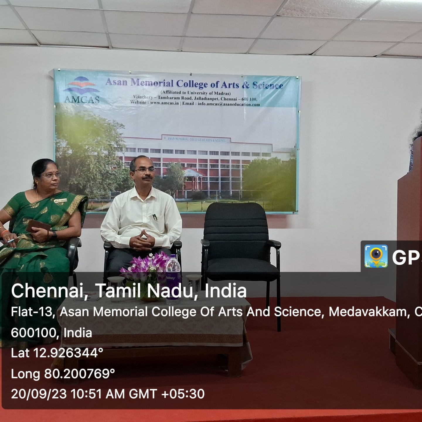 The programme was felicitated by Dr. T. S. Santhi Principal, Asan Memorial College of Arts & Science.