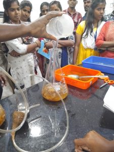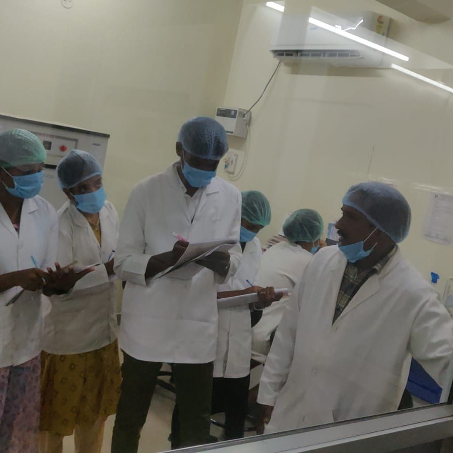 The technical team of the industry took over the students, segregated into batches and explained about the Good lab practices and Good manufacturing practices that are followed in the pharmaceutical industries.